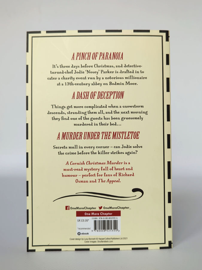 Четверта книга серії The Nosey Parker Mysteries, святковий детектив із корнішським колоритом. За три дні до Різдва детектив-кухар Джоді «Носі» Паркер бере участь у благодійному заході на 13-го століття абатстві на Бодмін-Мур, але снігопад ізолює гостей. Наступного ранку один із них виявлений жорстоко вбитим у ліжку. Усі приховують секрети, а Джоді має розплутати клубок обману та інтриг, щоб зупинити вбивцю. Історія поєднує напругу, гумор і святкову атмосферу, даруючи читачеві захопливе кримінальне чтиво.