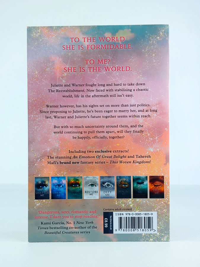 Романтична новела у світі серії Shatter Me від Tahereh Mafi, що розповідає про події після падіння режиму The Reestablishment. Джульєтта та Ворнер разом із друзями намагаються відбудувати світ і створити нове майбутнє. Але навіть після перемоги життя не стає простішим: навколо панує хаос, а відповідальність за зміни постійно відволікає їх від особистого щастя. Ворнер мріє одружитися з Джульєттою, проте обставини знову і знову заважають їхнім планам. Це тепла й емоційна історія про кохання, надію та шанс почати нове життя після великої боротьби.