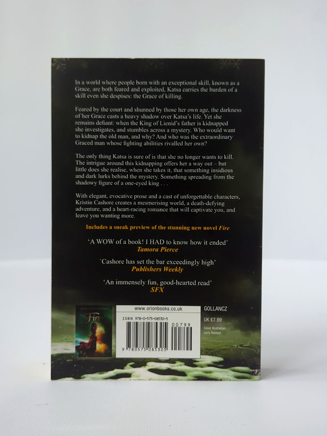 «Graceling» — фантастичний роман для YA, у світі, де деякі люди народжуються з особливим даром («Grace») — наприклад, здатністю до бою, мислення, виживання. Головна героїня Катса з дитинства має дар убивати і служить дядькові-королю як інструмент його наказів. Але коли вона зустрічає Поу, самовпевненого молодика з власним даром, вони разом розпочинають подорож, яка змінить їхні долі та світ навколо них.