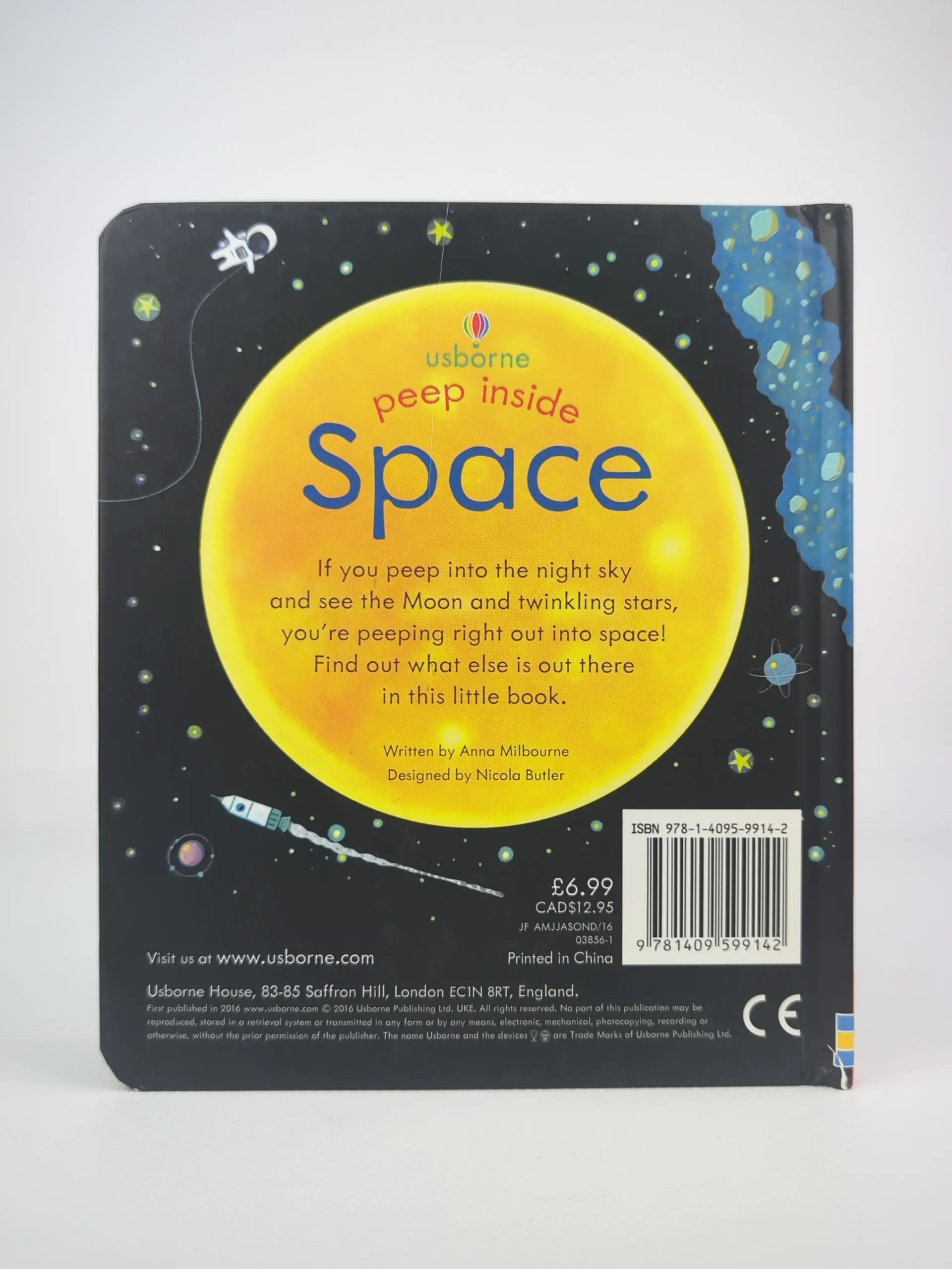 “Peep Inside Space” — захоплива книга для наймолодших читачів про космос, планети і Всесвіт. Завдяки міцним сторінкам, простим текстам і віконцям для відкривання діти знайомляться з Сонячною системою, зорями, ракетами та астронавтами. Usborne створює безпечне і цікаве перше знайомство з астрономією, розвиваючи уяву і любов до науки з раннього віку. Книга ідеально підходить для спільного читання з батьками та заохочує допитливість через гру і відкриття.