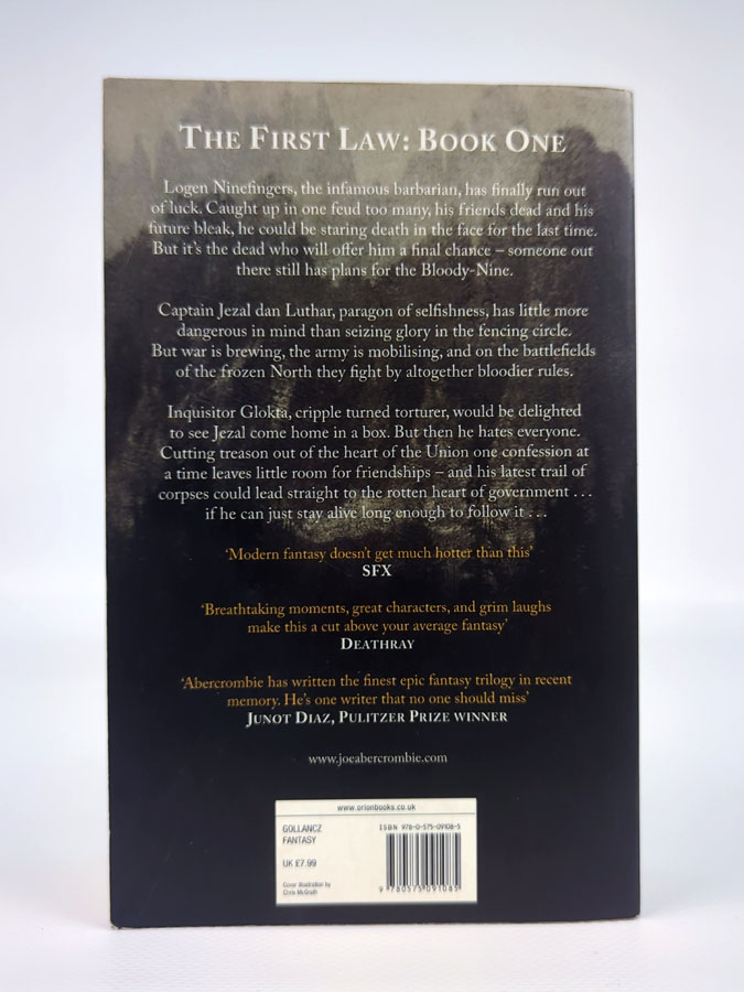 Перша книга культової серії The First Law від Joe Abercrombie знайомить нас із трьома героями, чиї долі невблаганно переплітаються. Логен Дев’ятипалий — варвар із репутацією, якому нарешті закінчилося везіння. Капітан Джезал дан Лутар — блискучий офіцер і майстер себелюбства. Інквізитор Глокта — колись солдат, тепер кат, який давно забув, що таке жалість. Коли на горизонті збирається війна, а в надрах влади визріває змова, на сцені з’являється чарівник Баяз — старий лисий дід, який може виявитись як великим магом, так і великим шахраєм. Межа між героєм і лиходієм тут гостра, як клинок.
